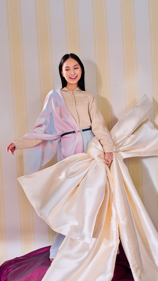 Love its fit! Its length is also perfect for me and am super impressed at how lightweight and frill-free ie. ironless! Just super love the baggy pants. Texture is a little like the balloon skirt but minus the "balloon". And the buckle is so cute and chic! Will definitely get another pair when you restock. Can't wait!
